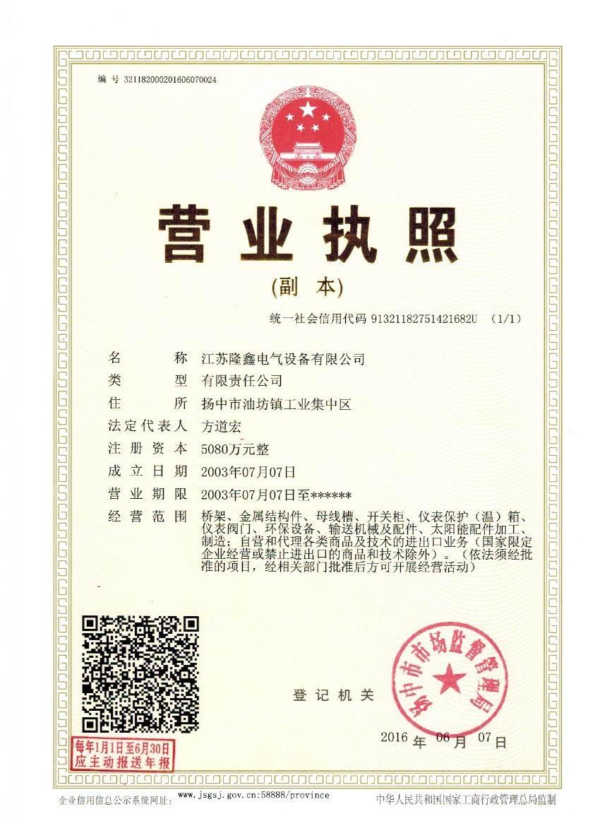江蘇隆鑫電氣設備有限公司是集科研、設計、制造、安裝、技、工、貿一體化的專業(yè)生產型企業(yè),是工業(yè)管道閥門、儀表管閥配件、母線槽、匯線橋架、玻璃鋼制品的專業(yè)生產廠家。